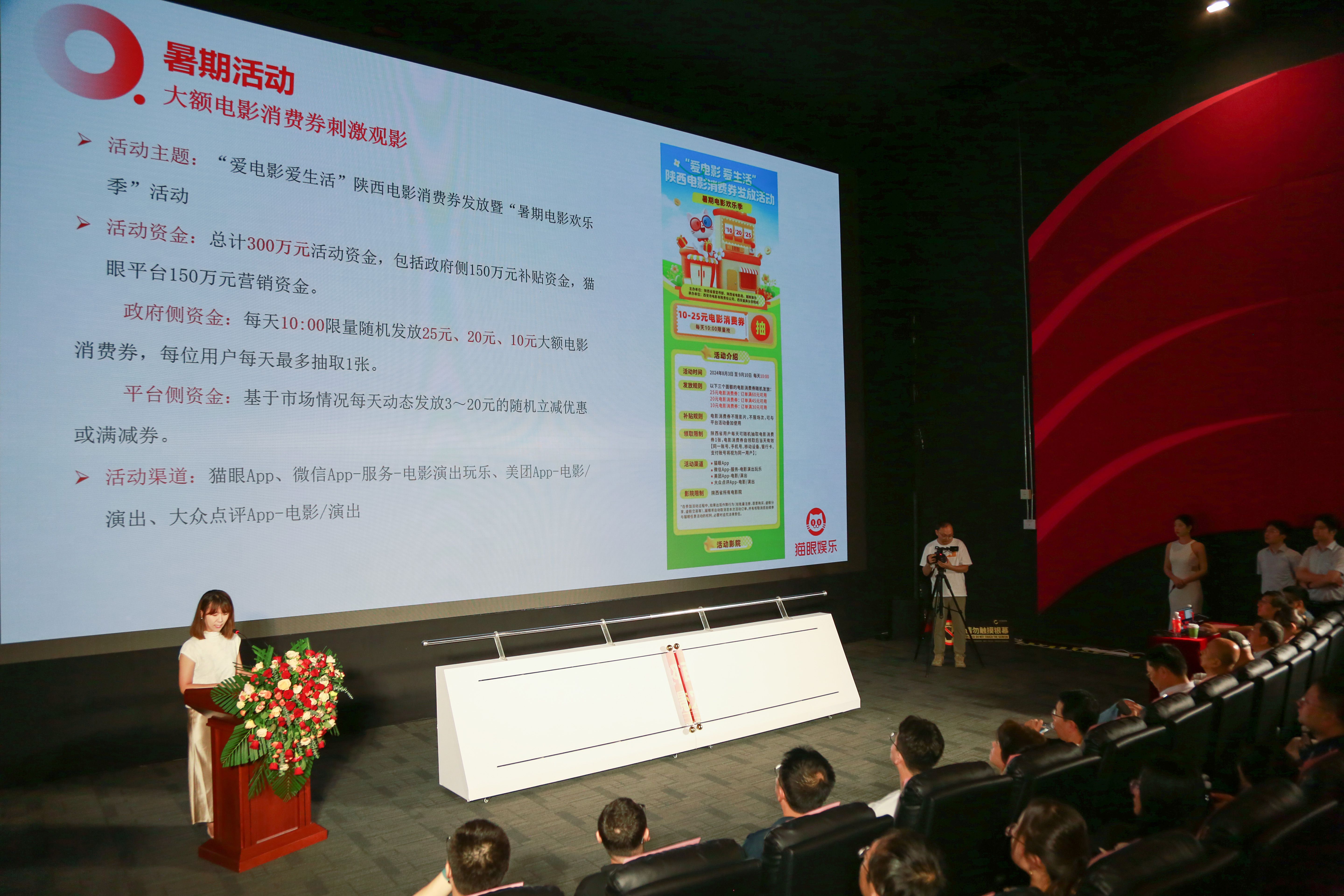 猫眼娱乐票务部大客户总监王译婕表示:希望通过本次活动进一步助力暑期档的票房提升,让电影消费券发放到更多陕西省观影群众的手中,助力市场不断繁荣。未来,猫眼也将继续做好行业“服务生”的工作,为广大观众提供更加优质的票务服务,陪伴中国电影行业一路前行。