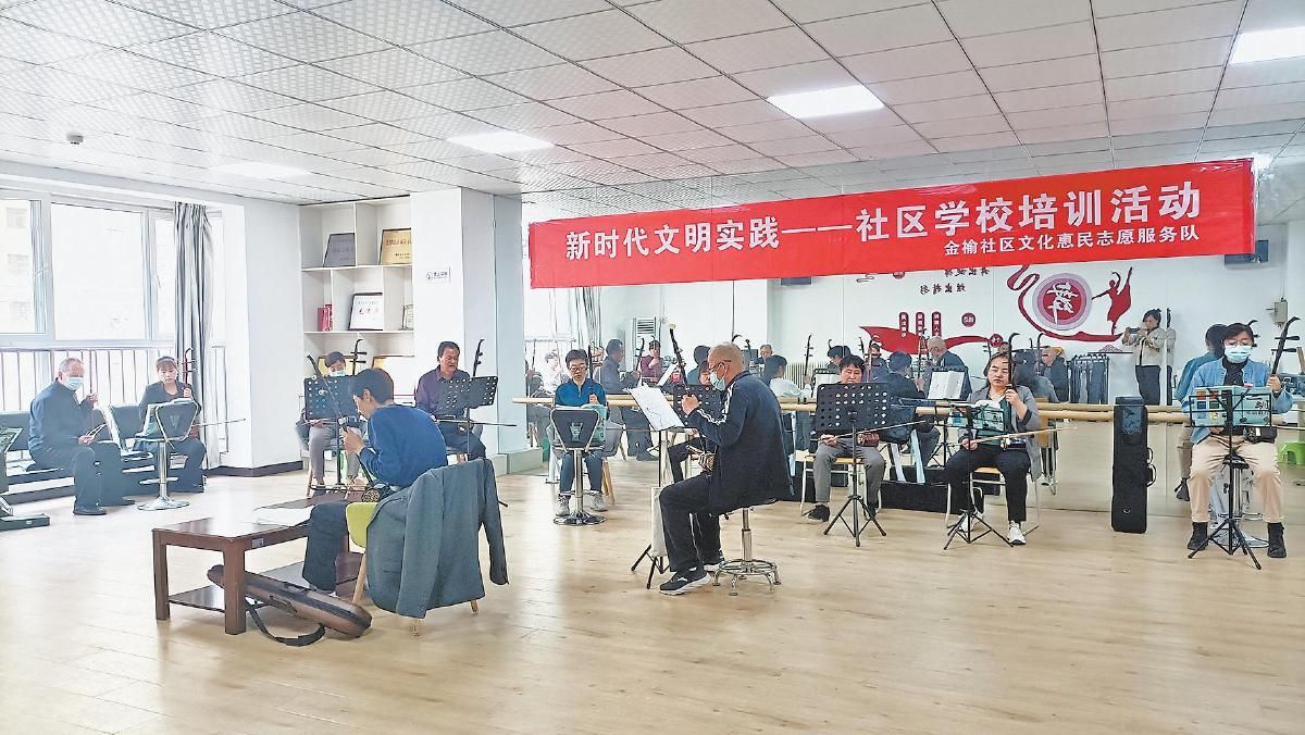 居民们在金榆社区举办的二胡培训班学习。 马艳华 摄