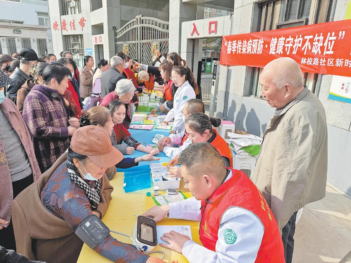 社区卫生服务中心医护人员为居民测量血压、血糖,并围绕春季传染病预防、慢性病调理等耐心地解答群众疑问,提供科学防护与就医指导。志愿者通过悬挂宣传横幅、发放健康手册、现场讲解等方式,向居民普及春季常见传染病的传播途径及预防措施,重点强调勤洗手、常通风、戴口罩、少聚集等科学防护知识,提醒老年人和儿童等重点人群做好自我防护,及时接种相关疫苗。