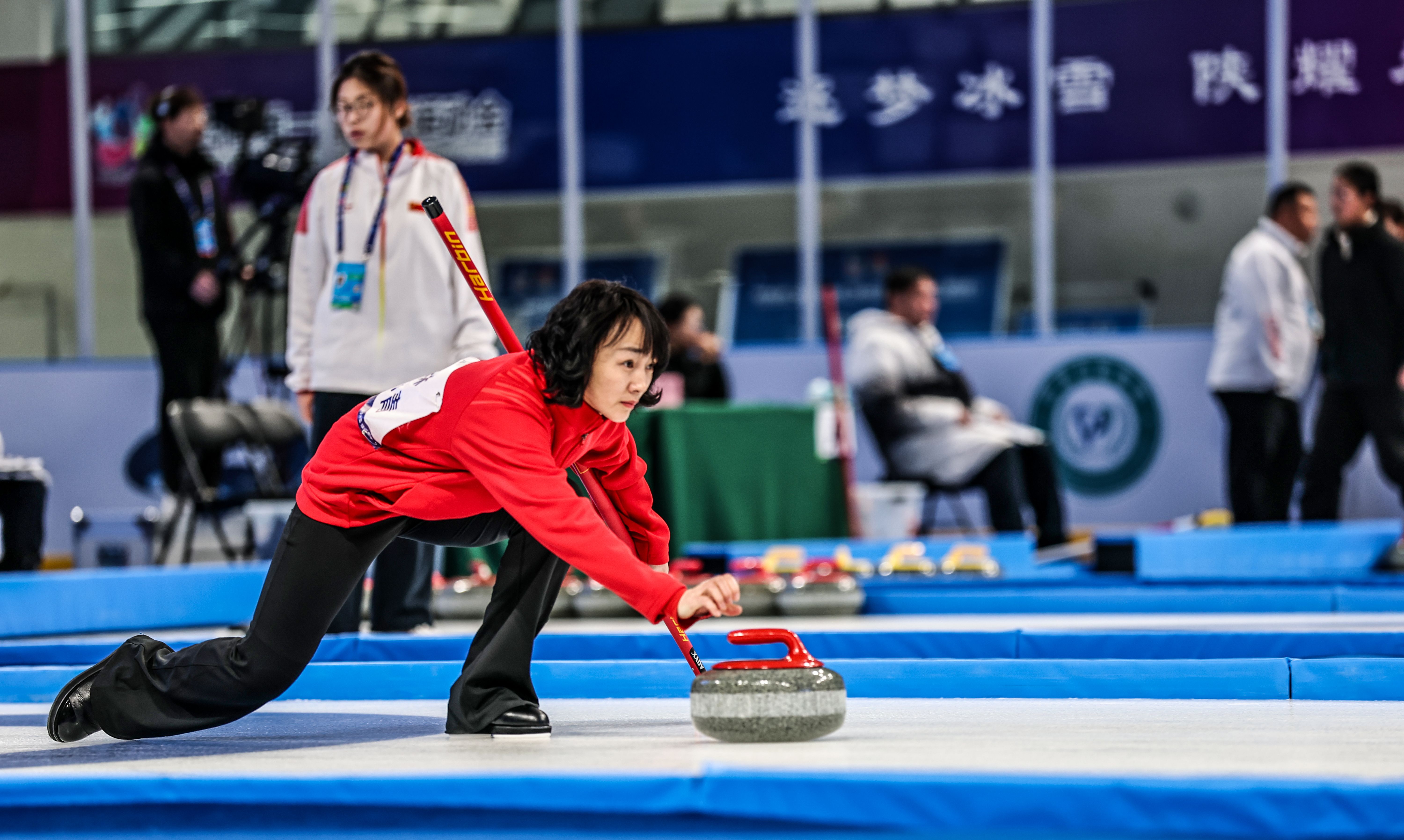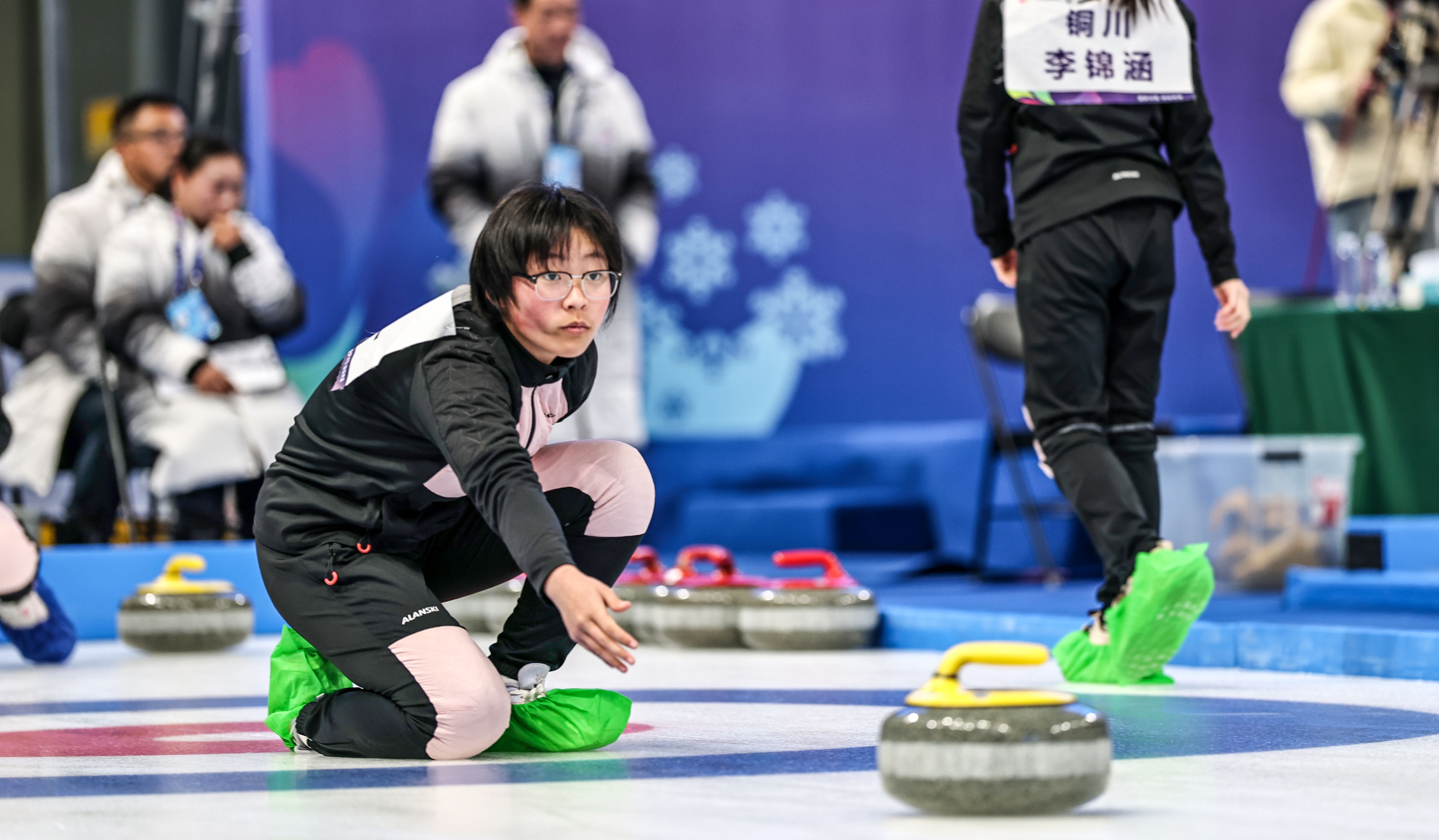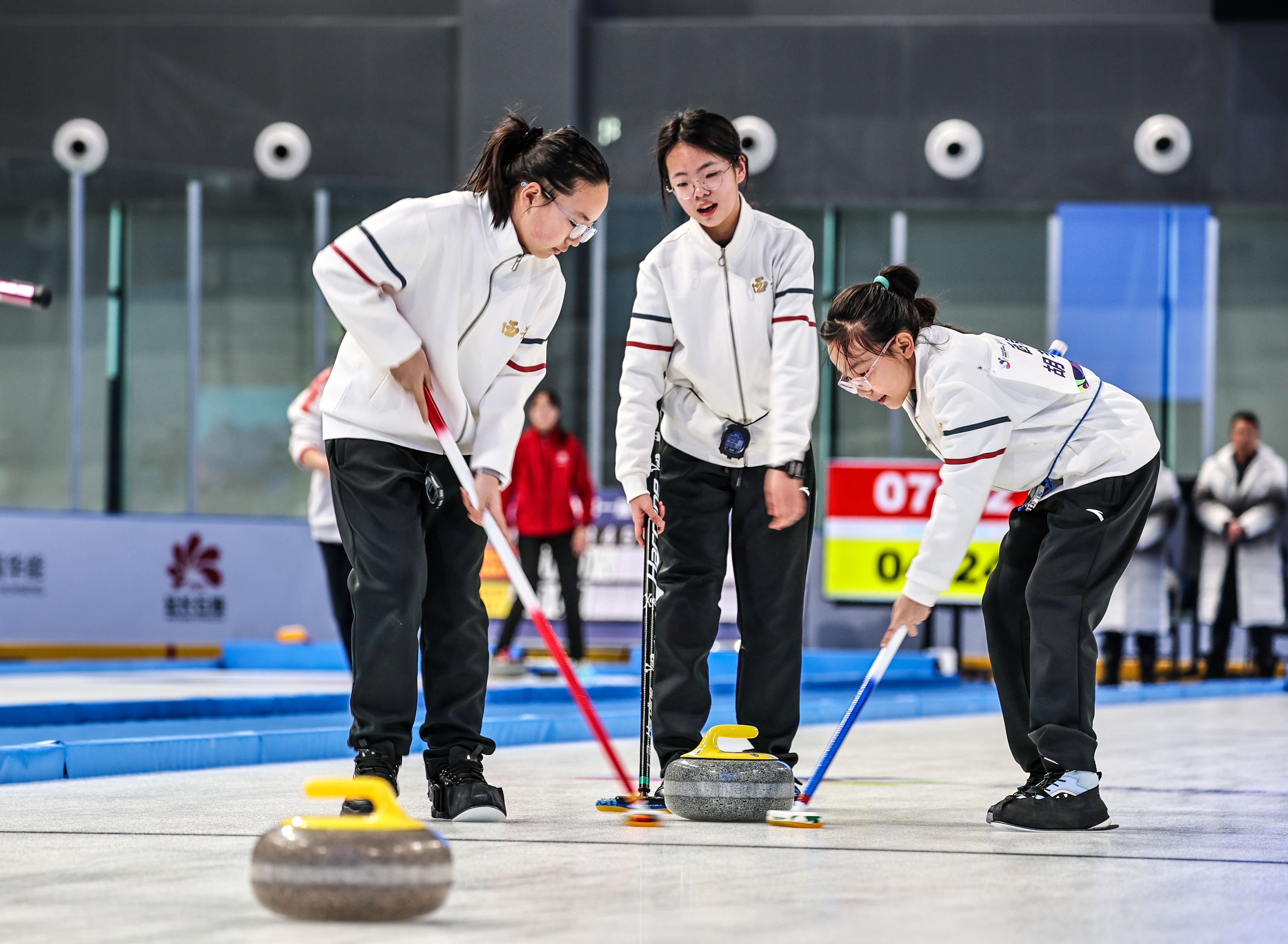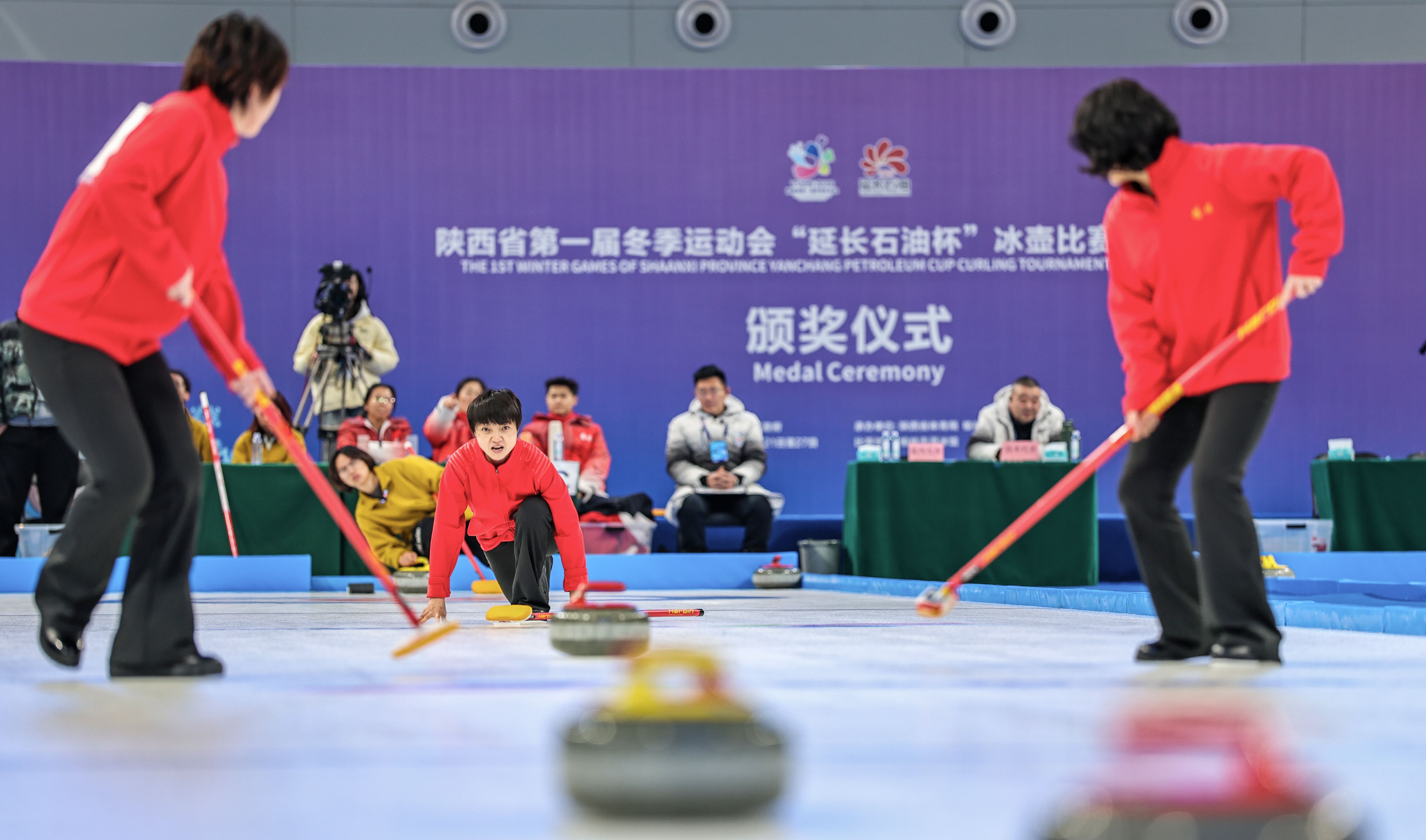 1月24日,陕西省第一届冬季运动会“延长石油杯”冰壶项目群众组赛事迎来第二个比赛日。在榆林市滑冰馆的四条赛道上,各组别共展开十余场激烈对决,各队战术运用成熟,赛场局势跌宕起伏,展现了我省冰壶运动蓬勃发展的良好态势。