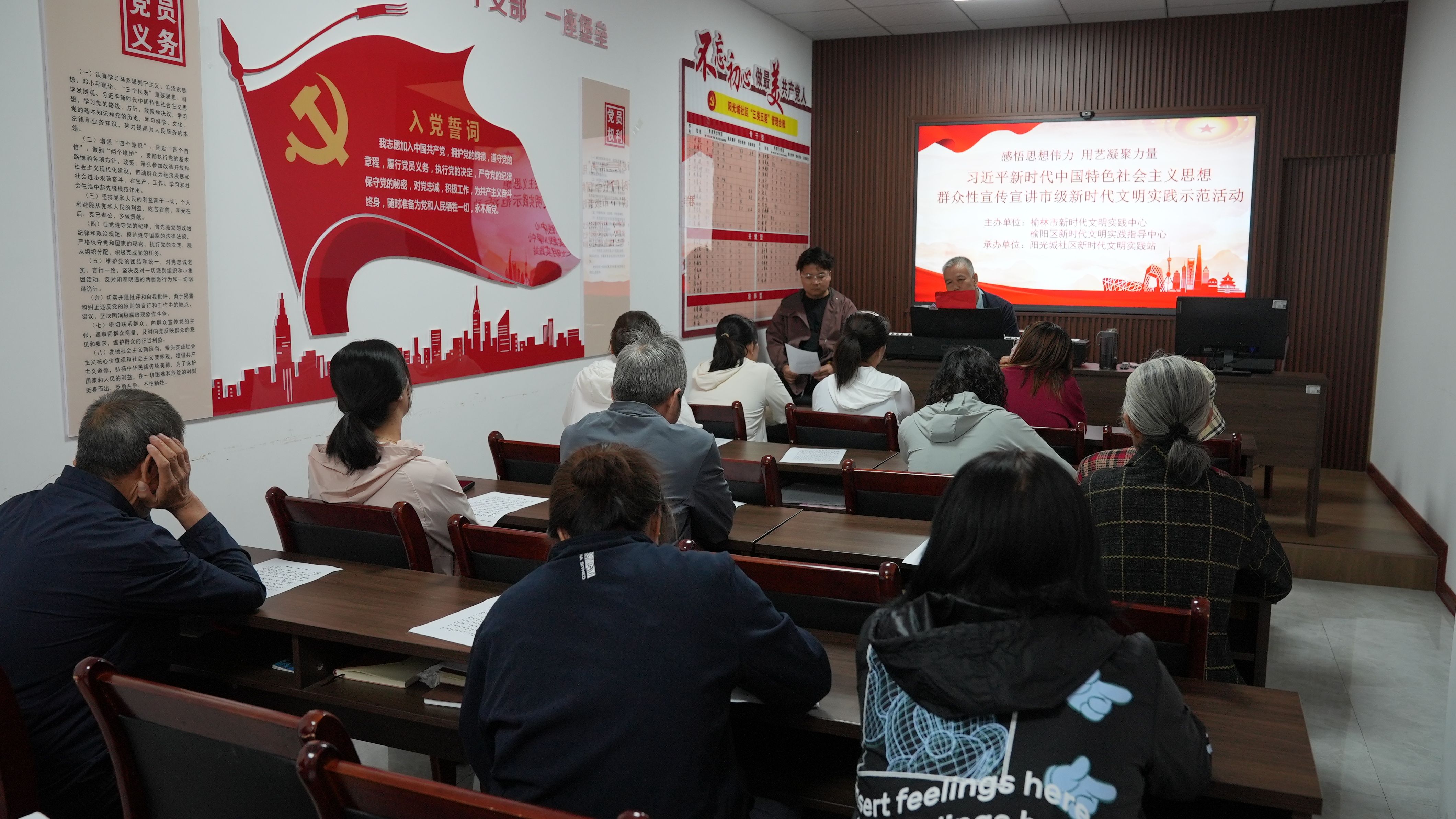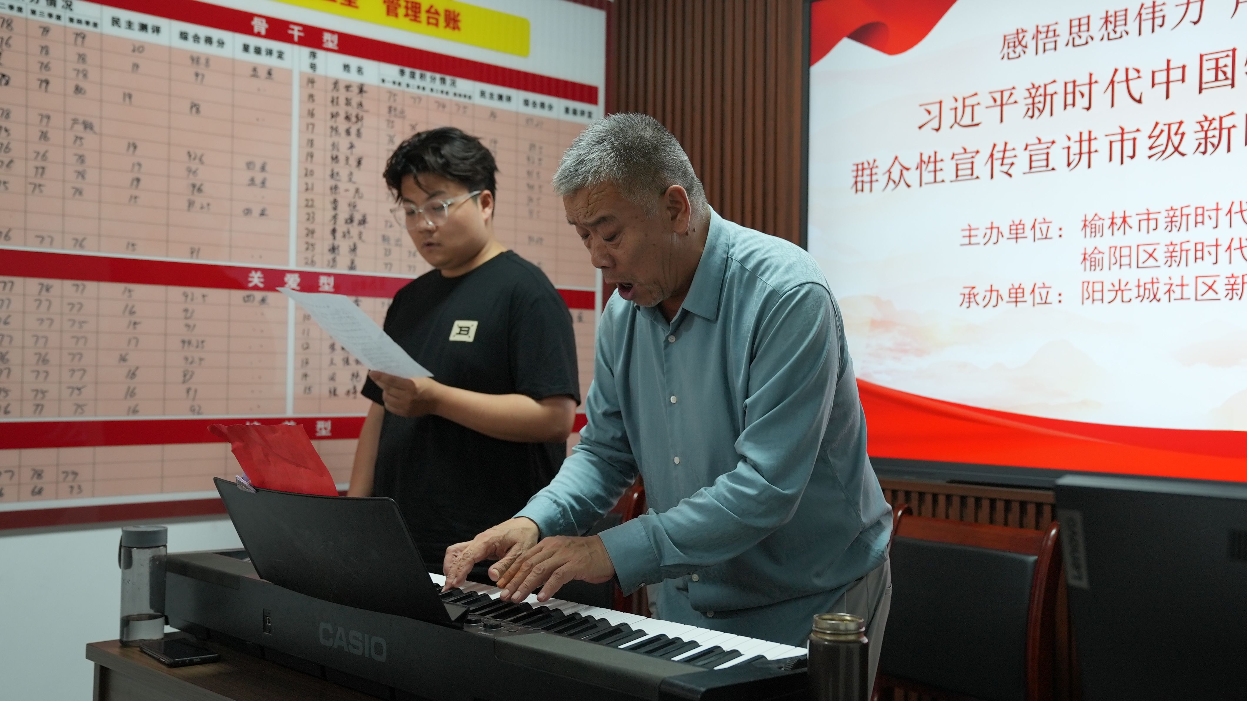 活动邀请了榆林实验中学高级音乐教师常体富就传唱经典进行分享交流。常体富老师整理挖掘了一批经典红歌背后的时代记忆和创作故事,用音乐党课进基层的方式,带领居民群众回首难忘奋斗岁月,并逐字逐句为大家讲解唱好经典红歌的基本技巧,如何控制气息、如何发声、如何带入情感等。