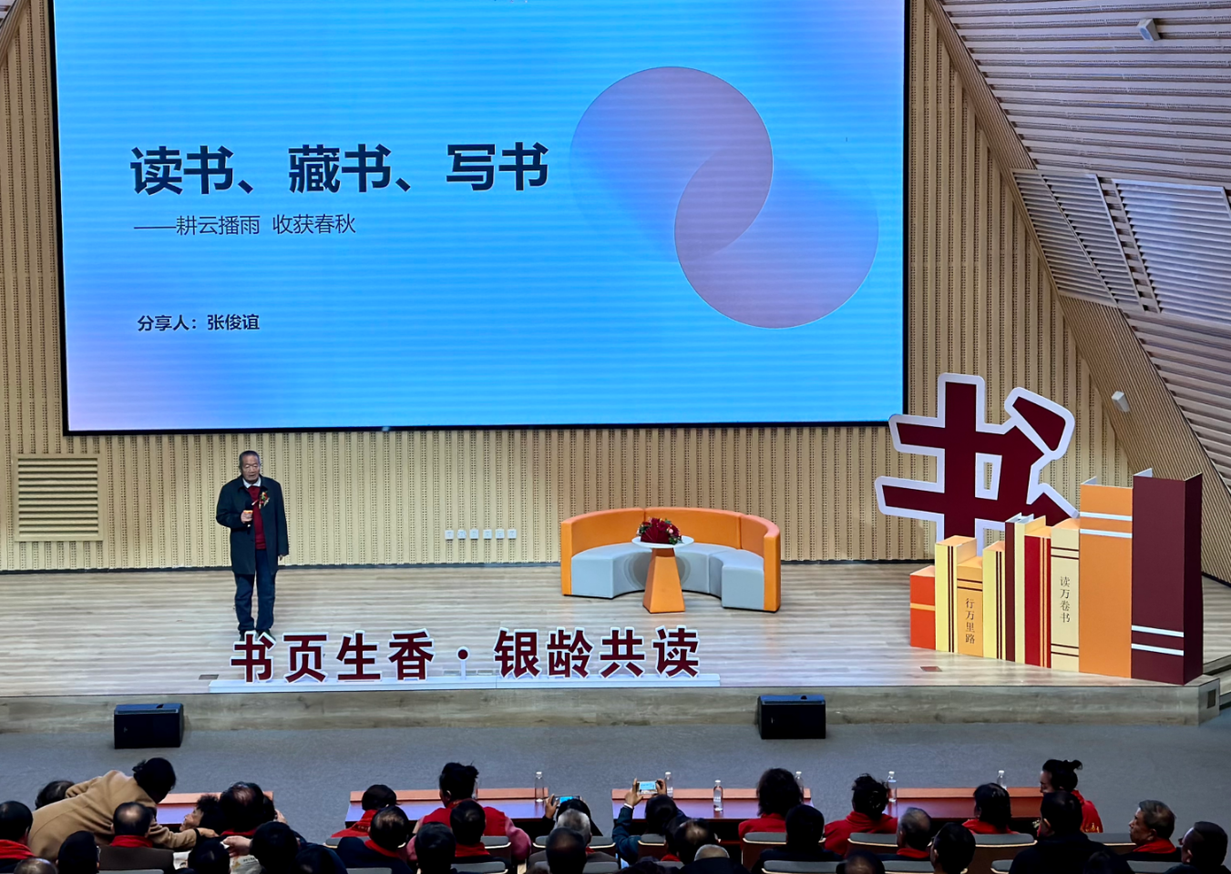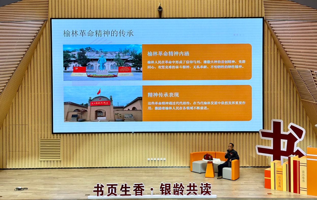 在阅读分享环节,深耕党史研究22载的资深编辑钟自鸣,以“只有不断充电,才能有所贡献”为主题,分享了编写《星火燎原》榆林革命史话的心得。榆林传媒中心原副主任、高级记者呼东荣则以《地质笔记》为引,回顾了自己36年新闻生涯中的难忘经历,传递文字背后的坚守与担当。榆林市陕北文化研究会副会长张俊谊,围绕“读书·藏书·写书”分享自己与文字相伴的岁月故事,大家对文化的赤诚与热爱感染了现场每一个观众。