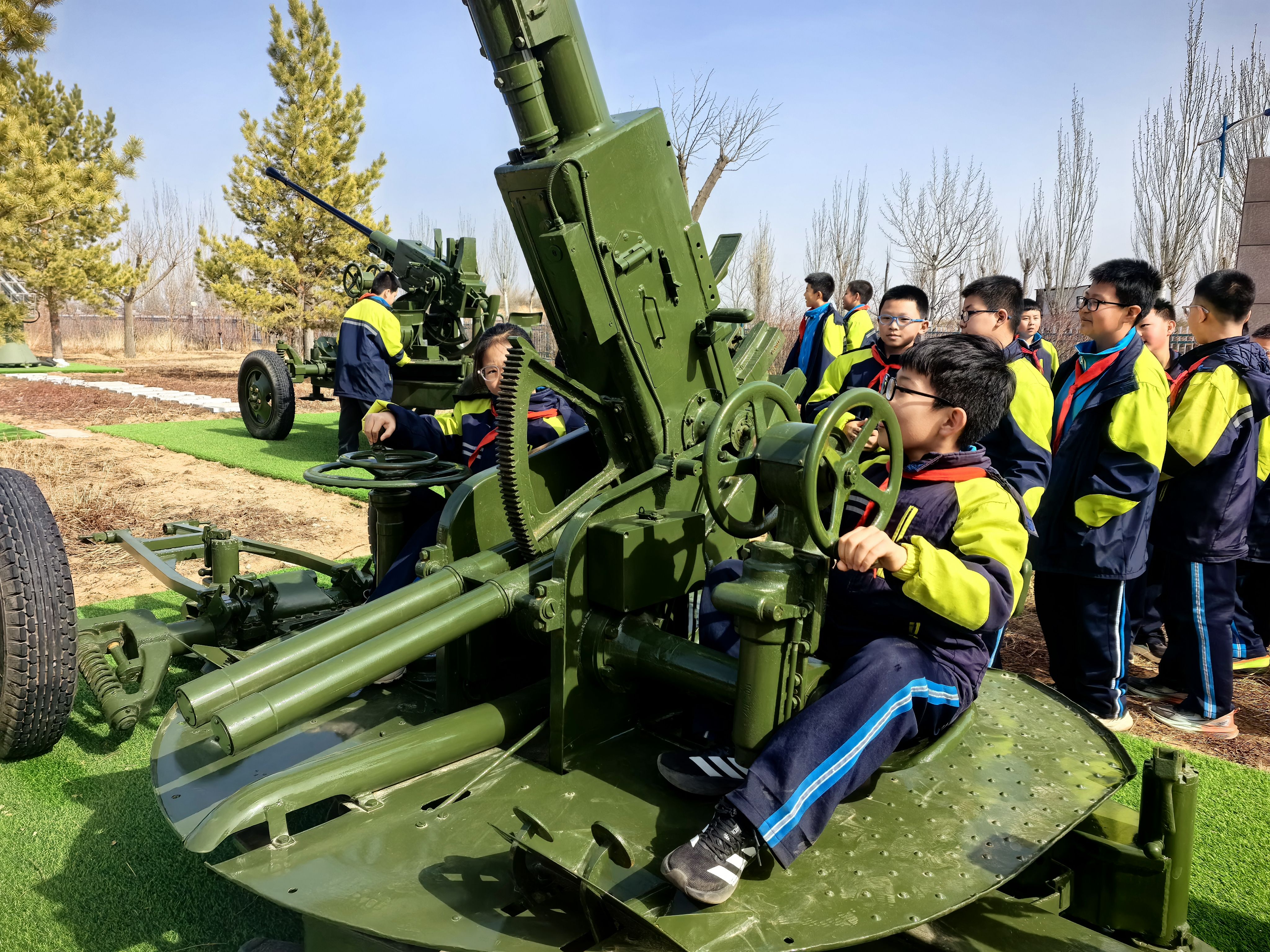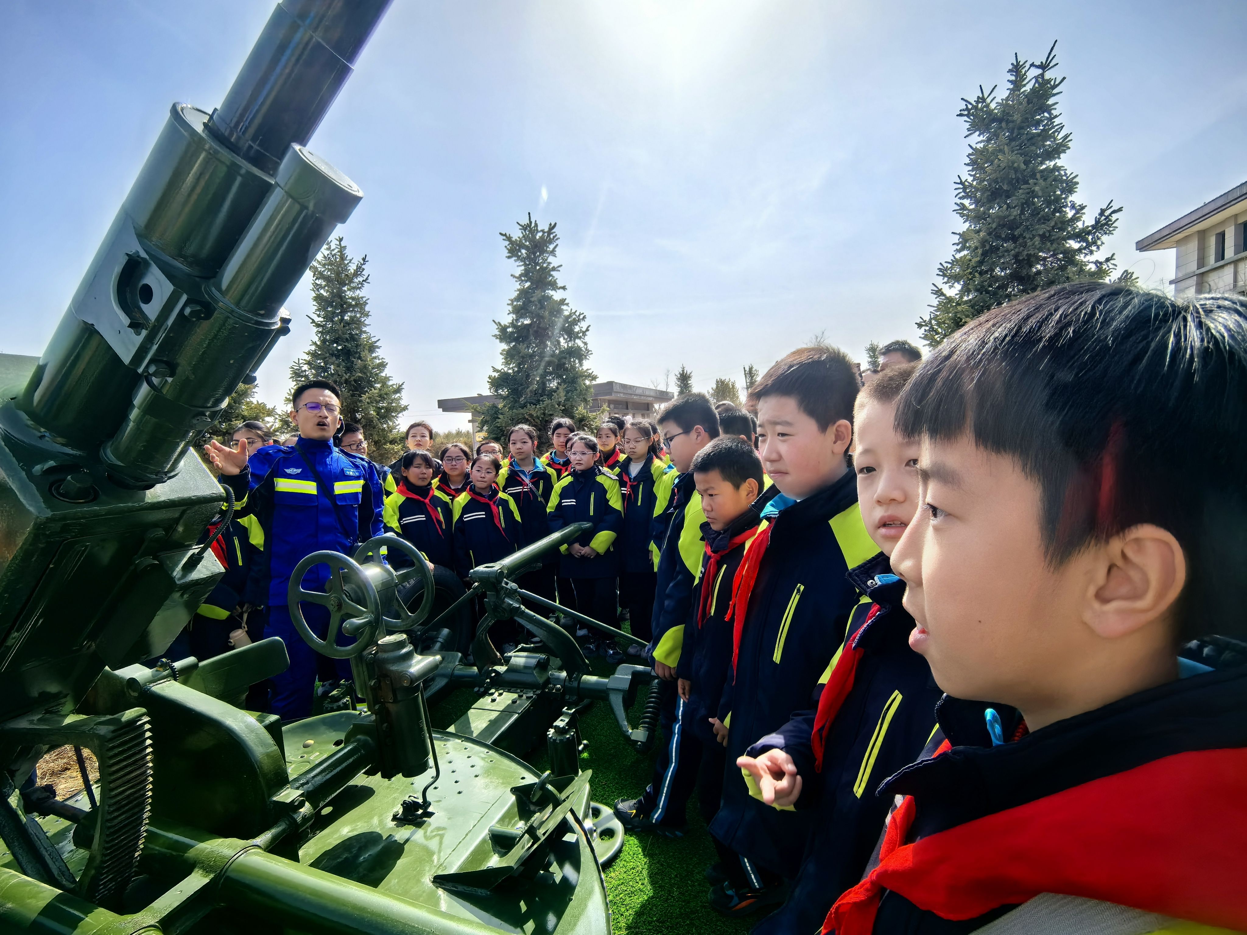 活动现场,来自榆林市第二十七小学的50余名师生在基地工作人员的带领下,近距离参观了高炮、火箭发射架以及增雨飞机等地面与空中作业装备。面对这些平日里难得一见的高科技装备,孩子们充满了好奇。