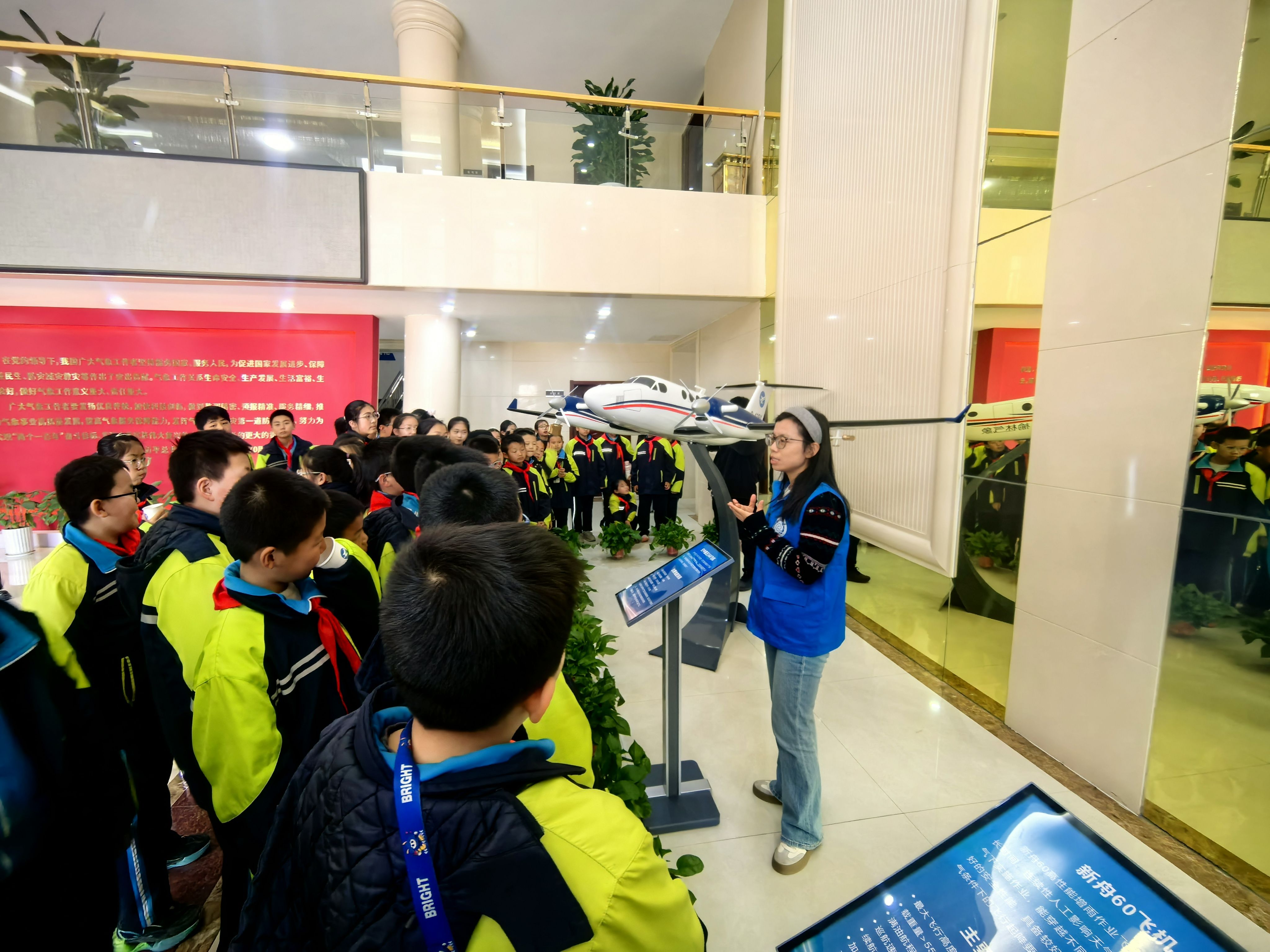 除了观摩实物装备,同学们还走进人影科普馆,在沉浸式体验中探寻人影科技的奥秘。模拟操作区里,孩子们亲手操控火箭发射器模拟台,体验人工影响天气的作业流程;专家讲堂上,气象专家用通俗易懂的语言,讲解雨滴冰雹的形成及人工增雨的科学原理;随后的“人影知识大闯关”将现场气氛推向高潮,大家在寓教于乐中巩固所学知识,也在心中播下了关注气象、热爱科学、守护家园的种子。